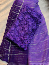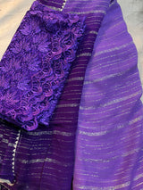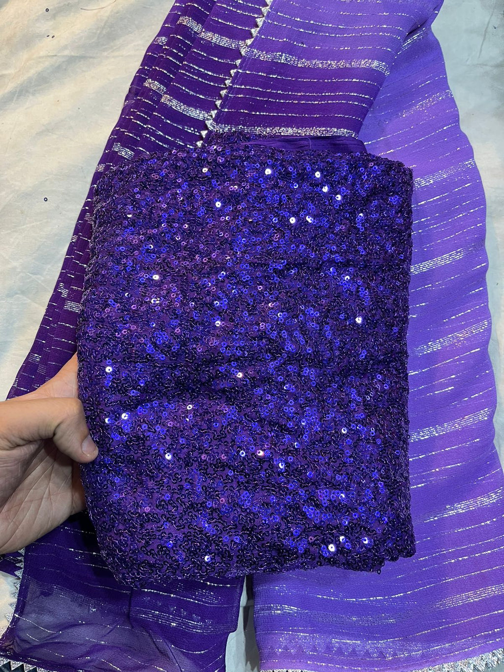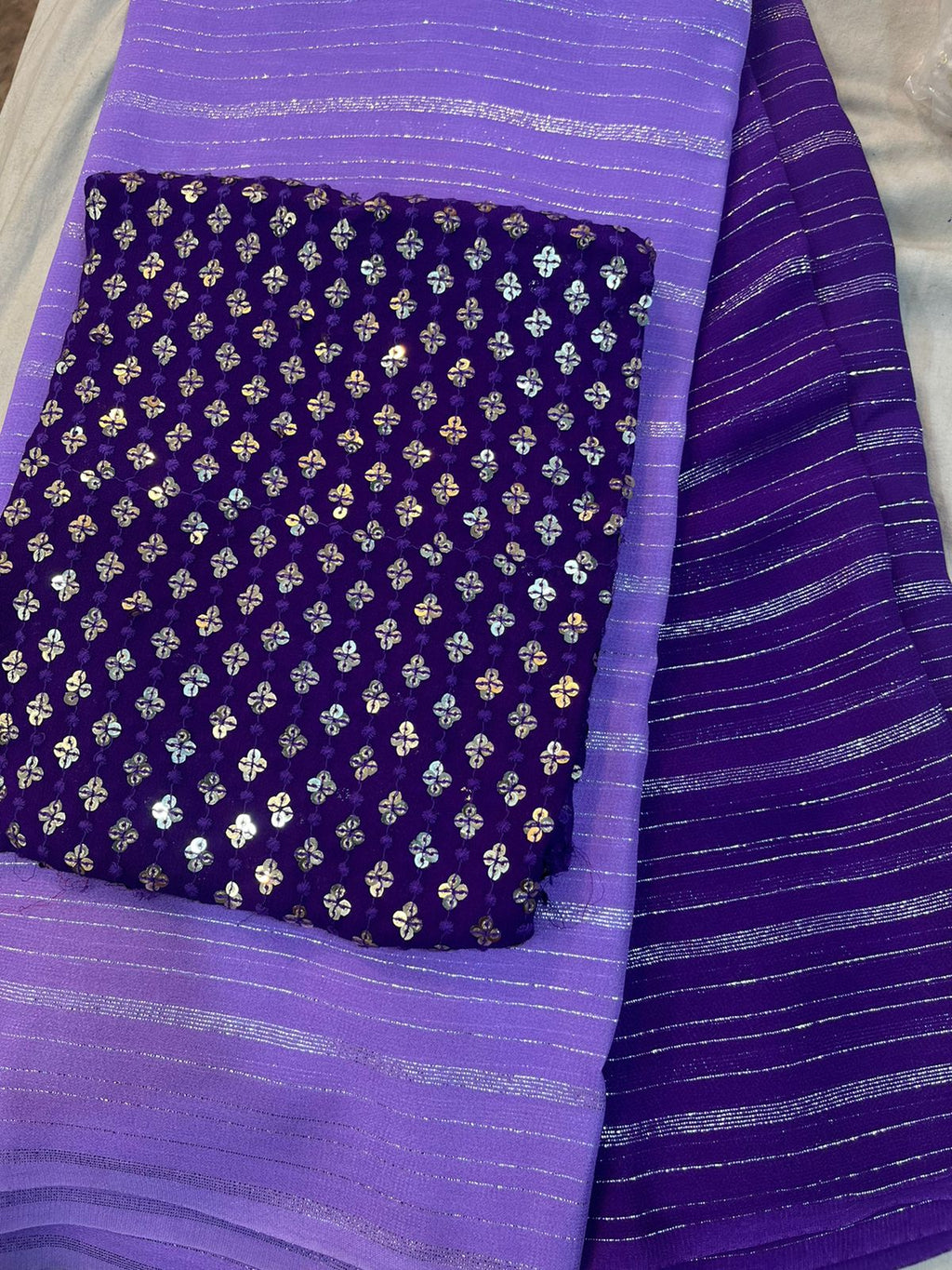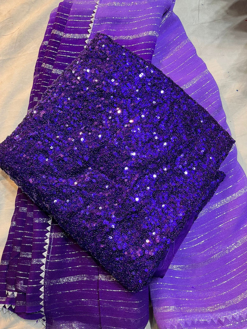 - Pure banarasi Georgette saree with silver zari lines and a matching blouse.