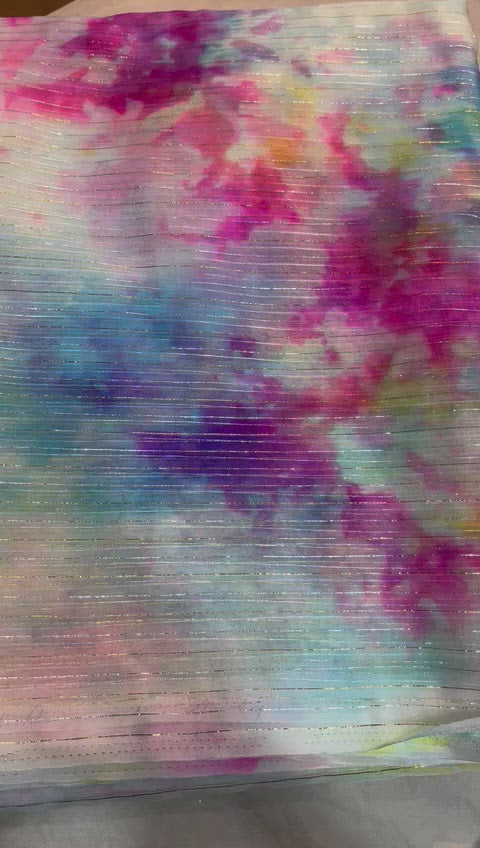 • Shibori multi-colored dye and tie pure Georgette and lurex organza blend saree with silver zari lines with banarasi zari blouse.