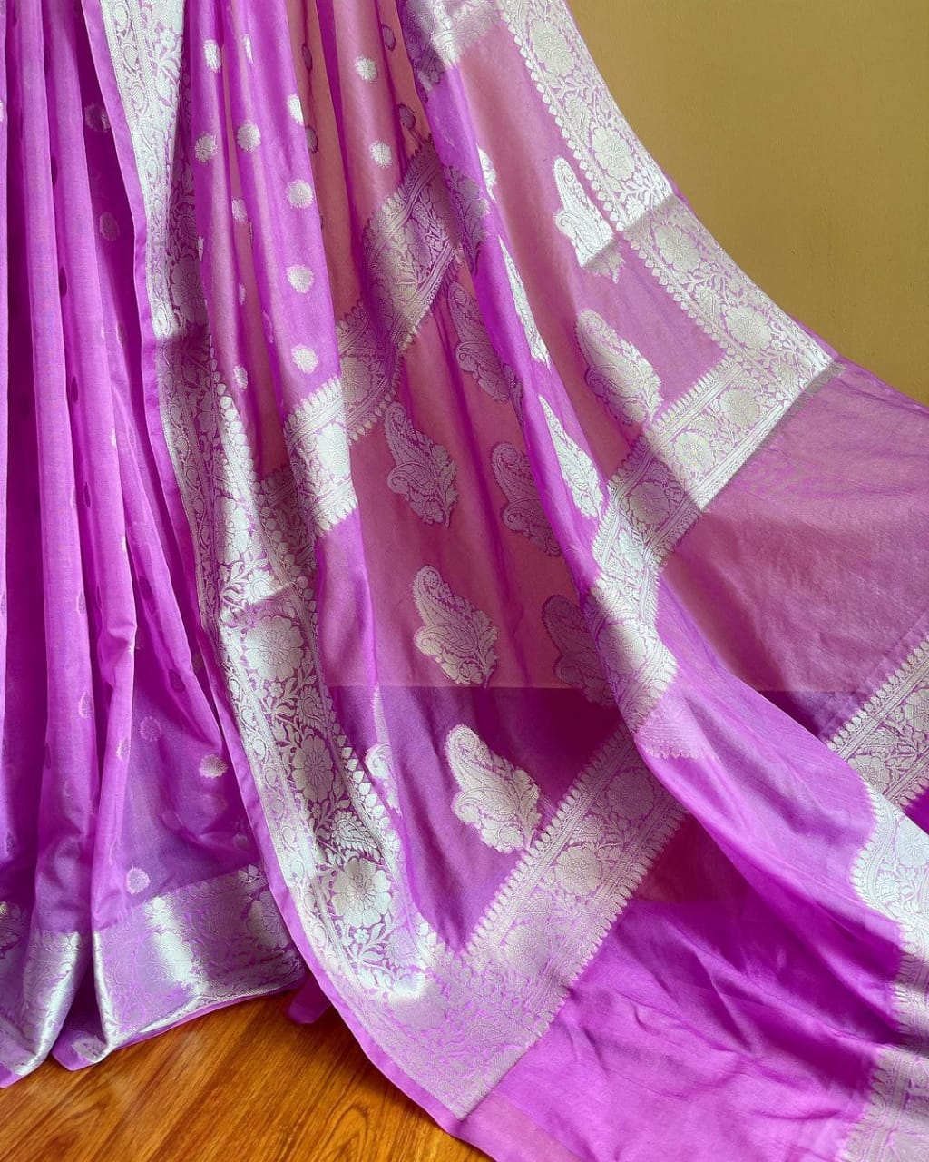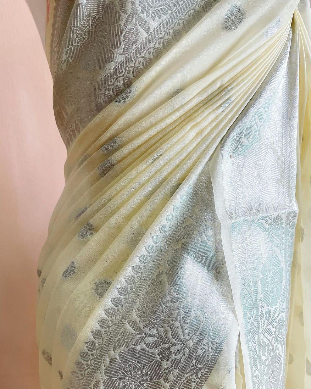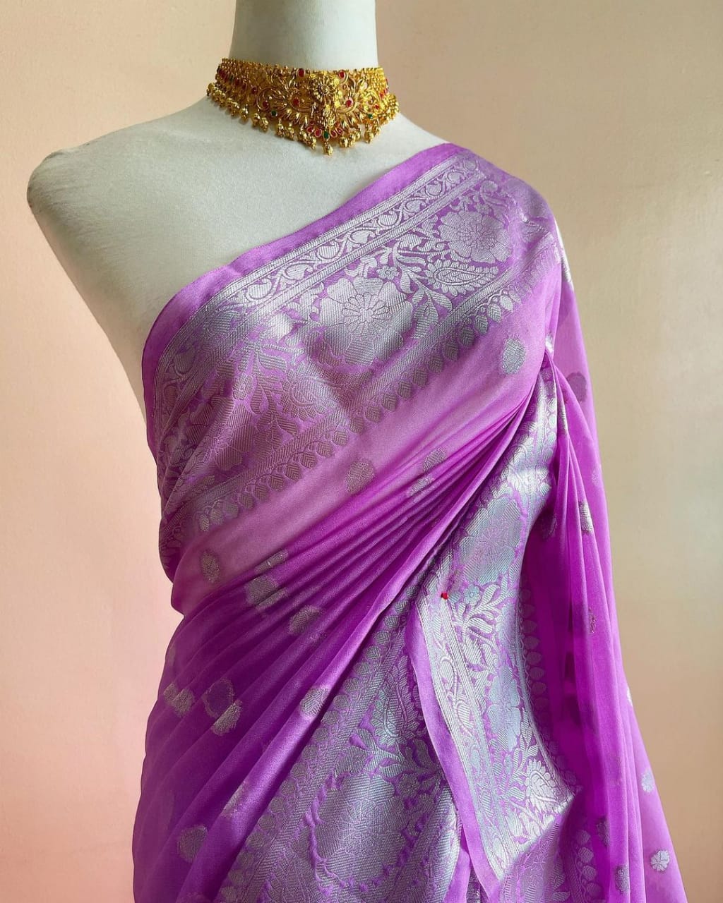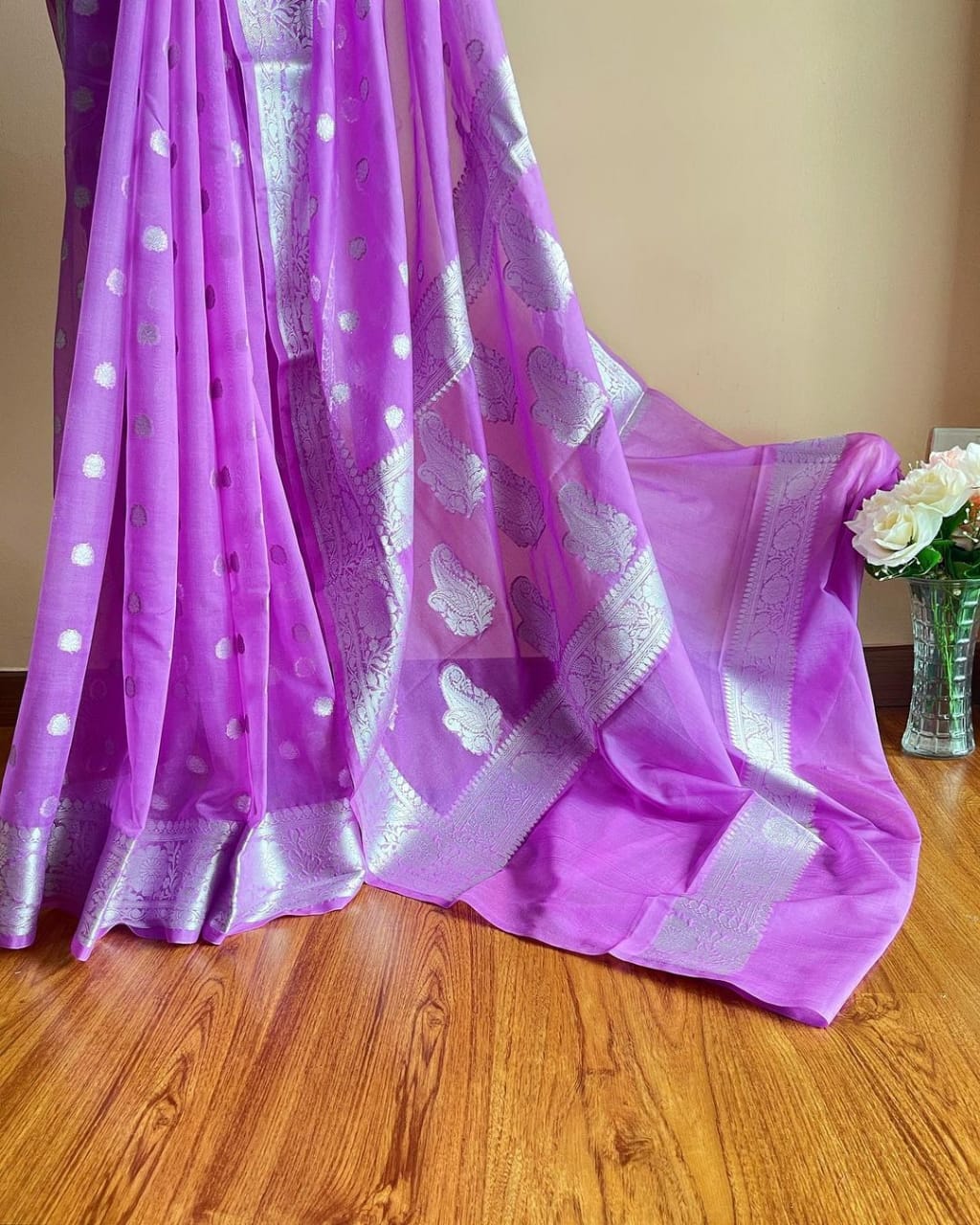 This Premium semi chiffon silk saree with silver zari saree is coming all the way from Varanasi