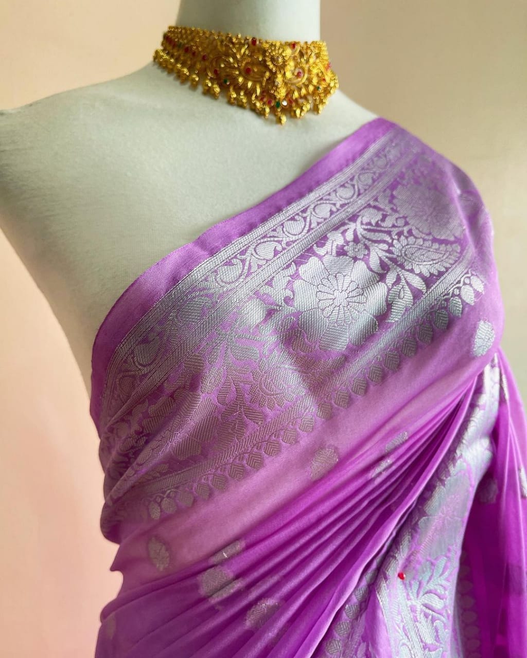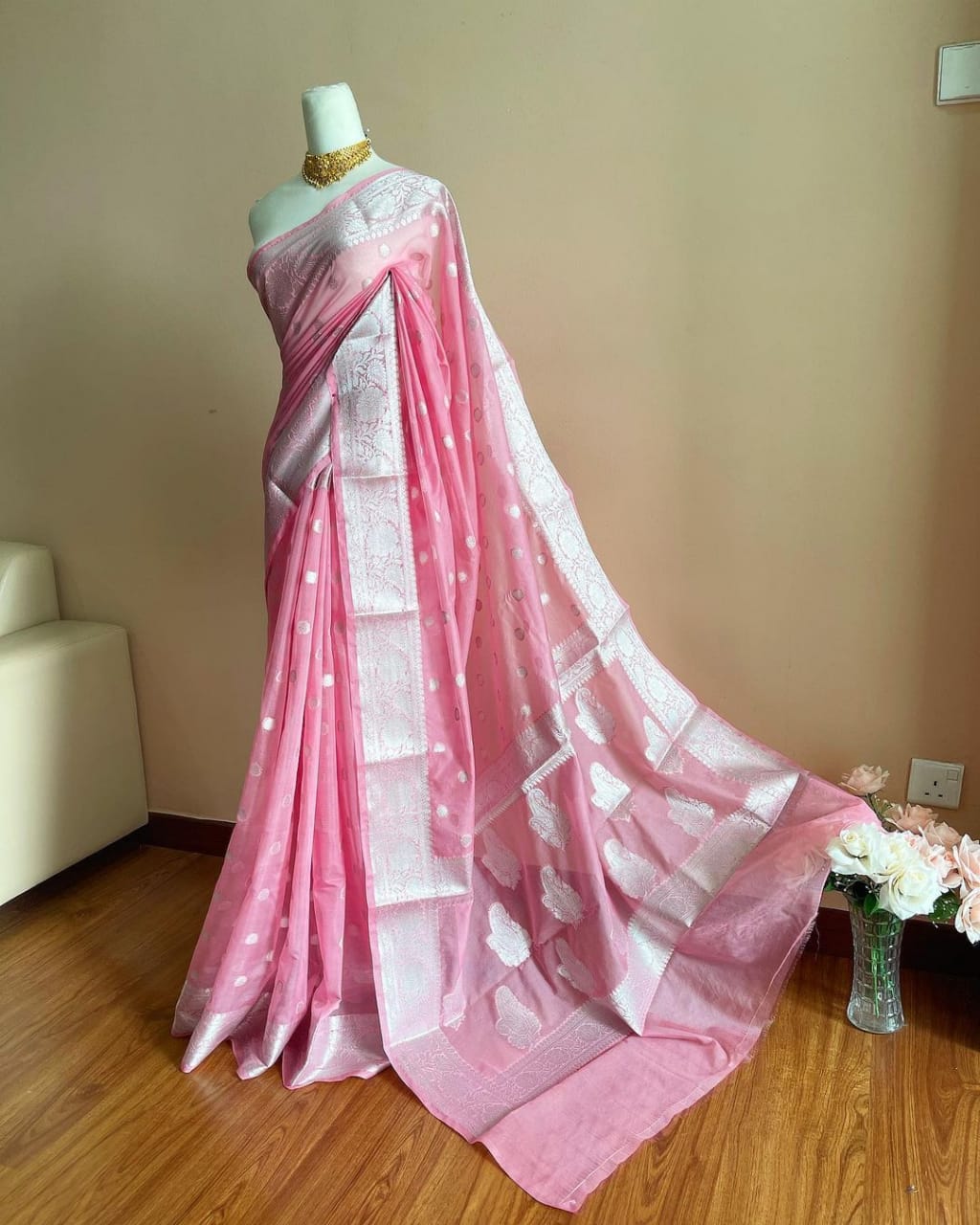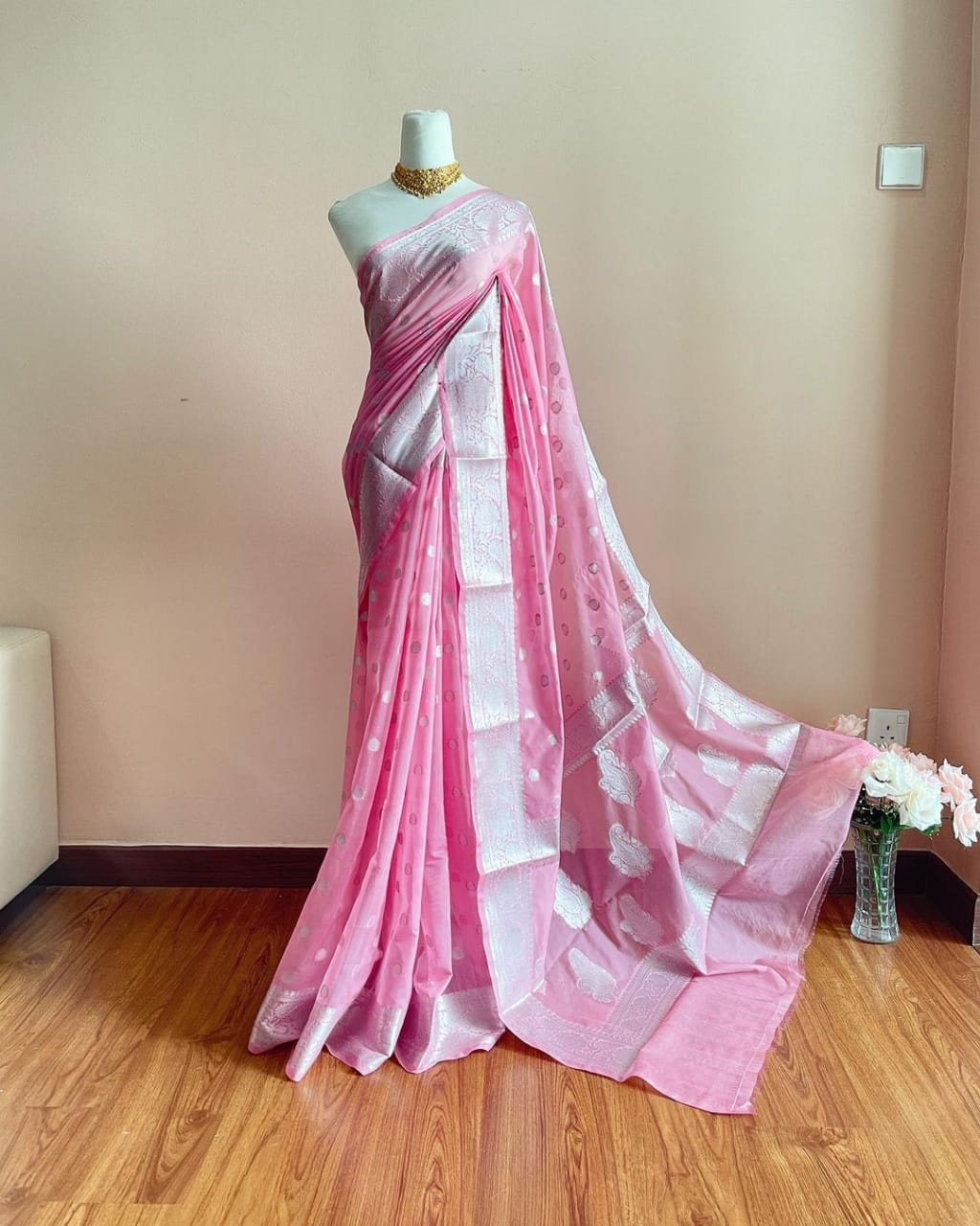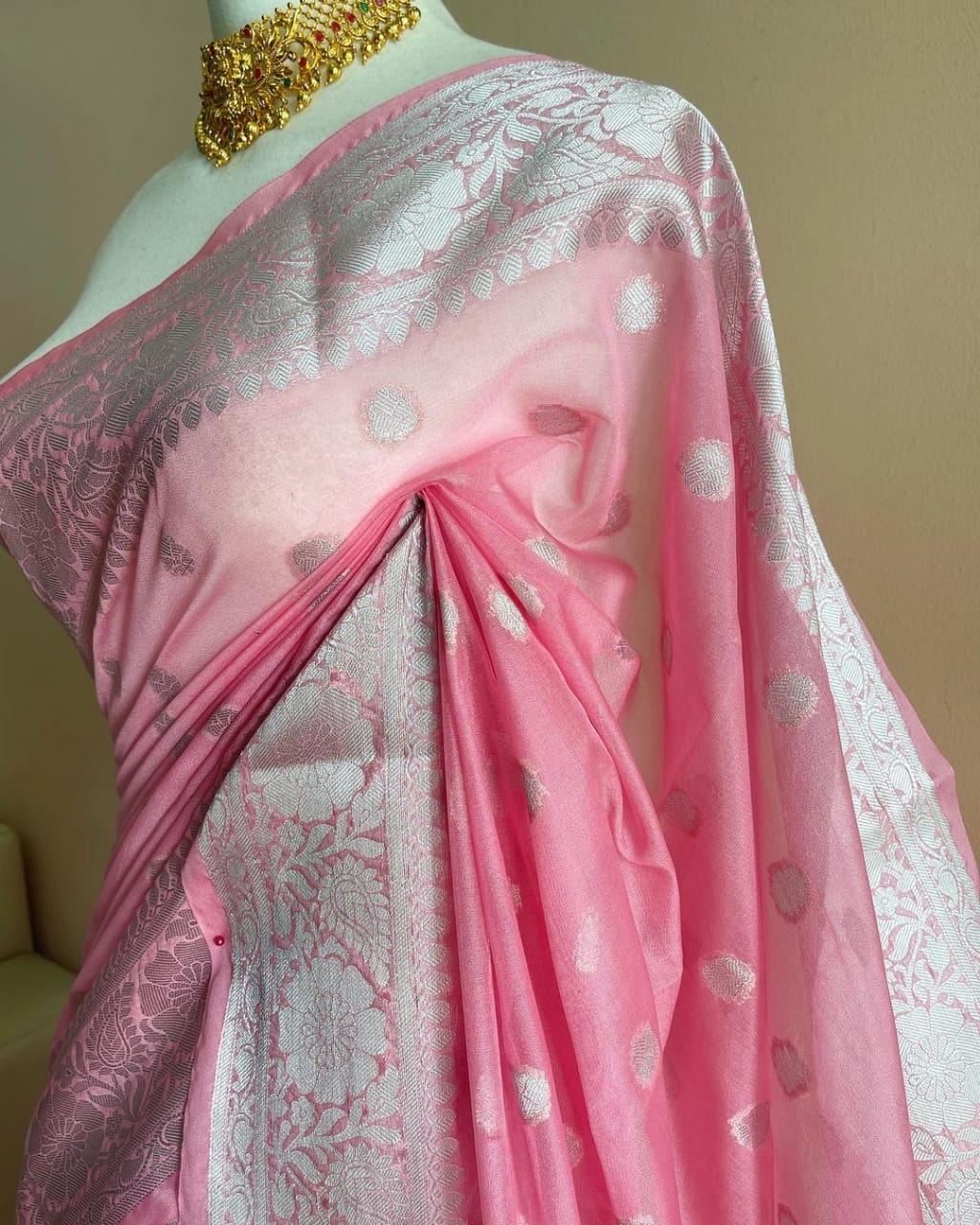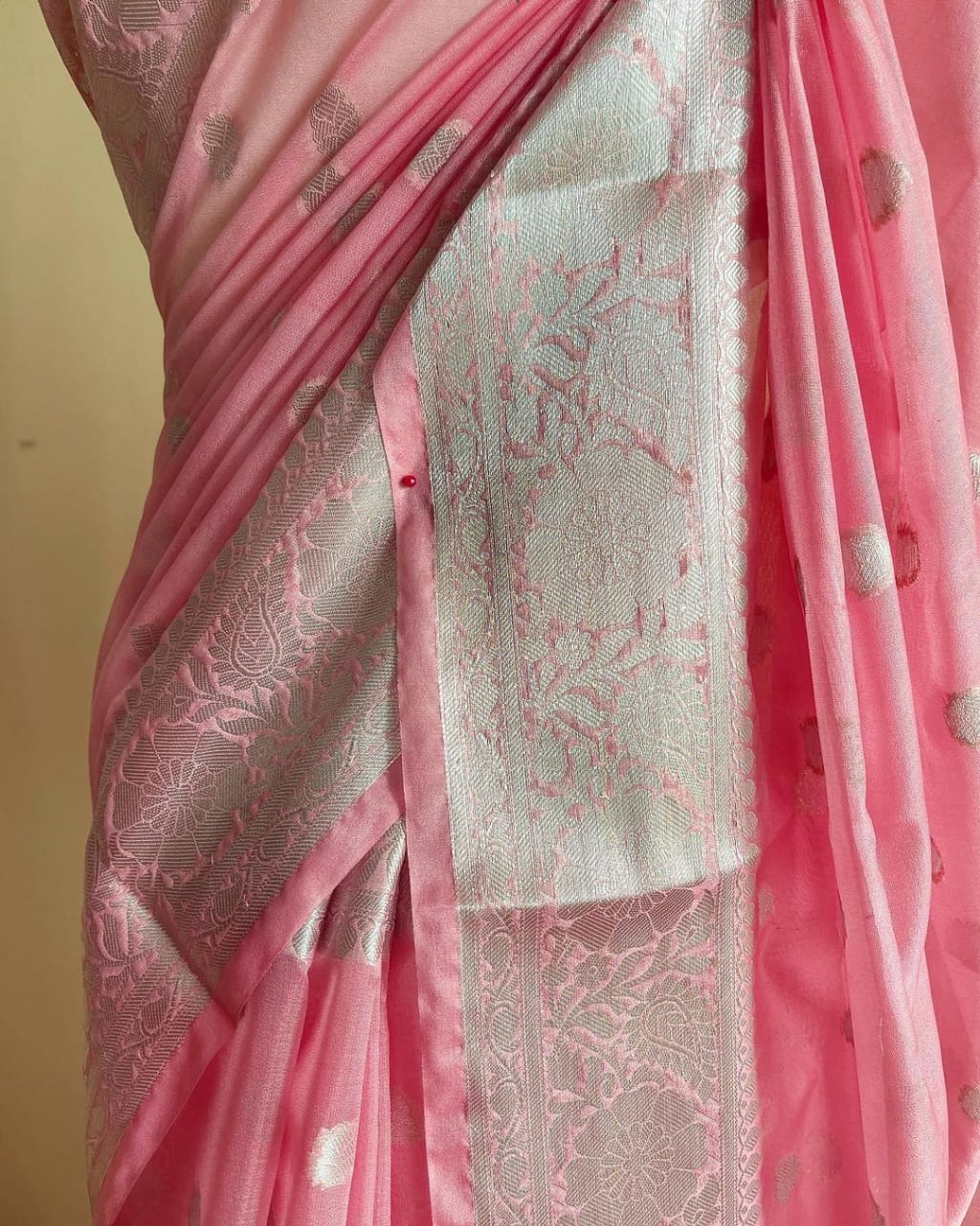 This Premium semi chiffon silk saree with silver zari saree is coming all the way from Varanasi