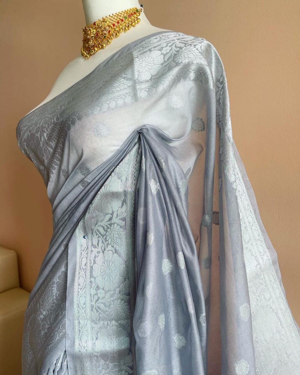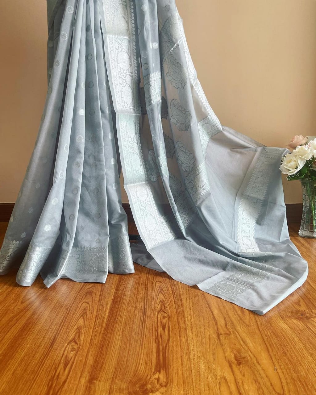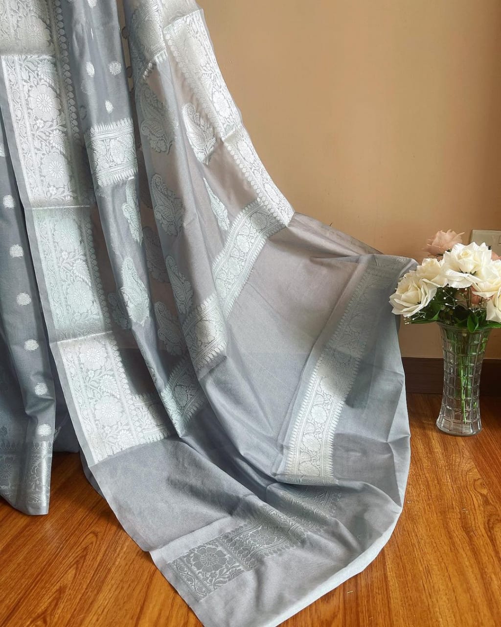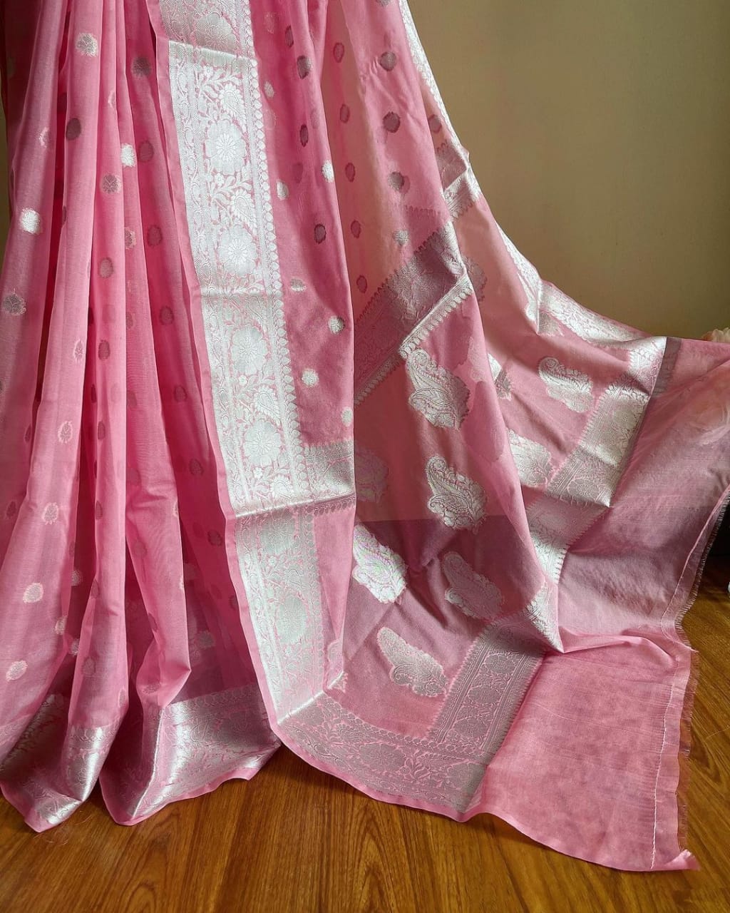This Premium semi chiffon silk saree with silver zari saree is coming all the way from Varanasi