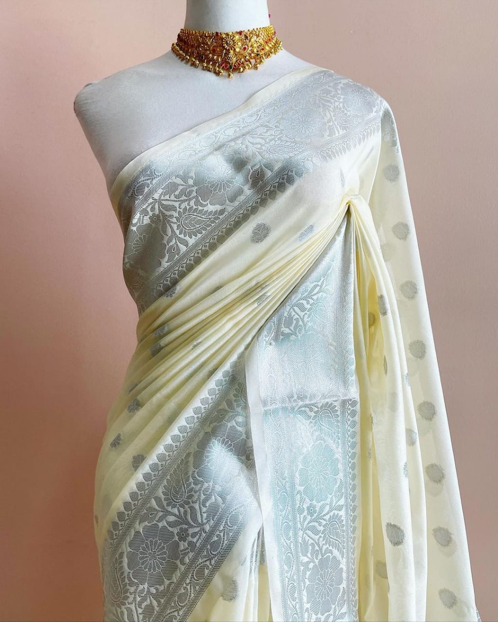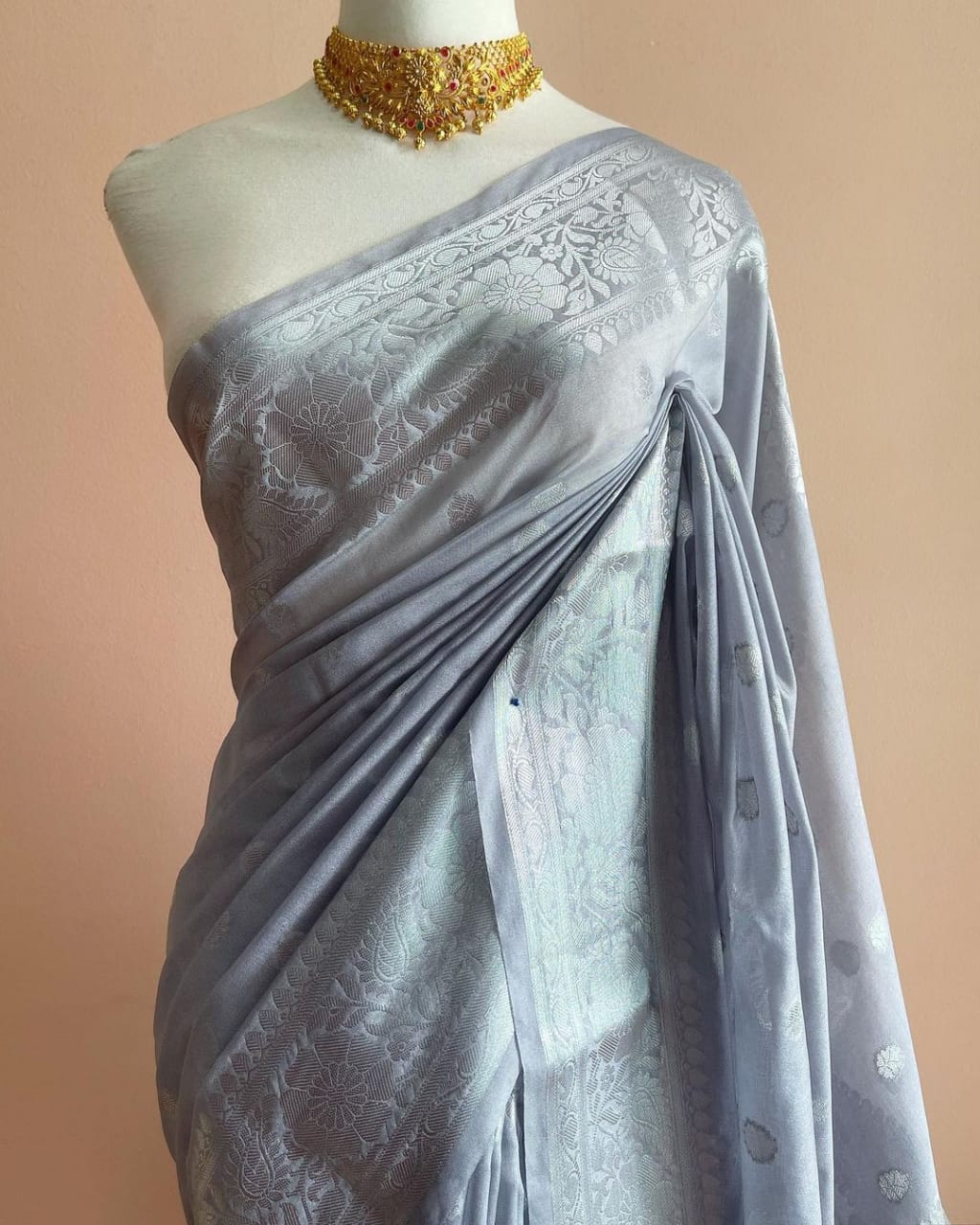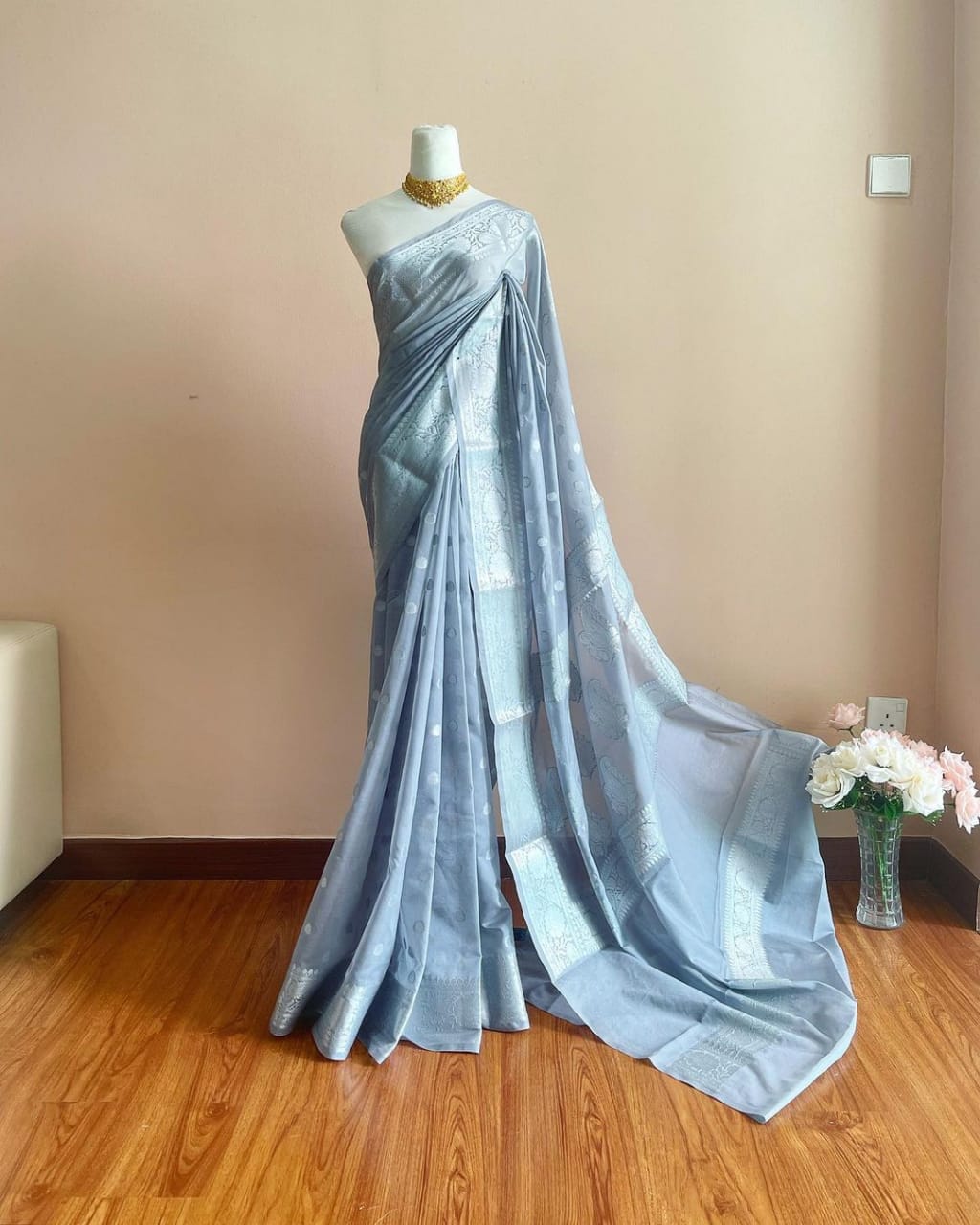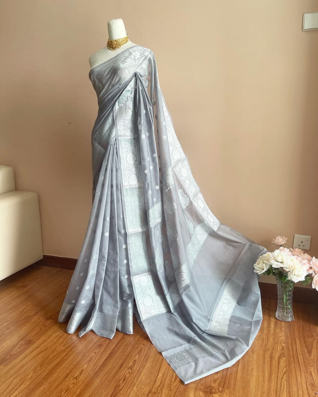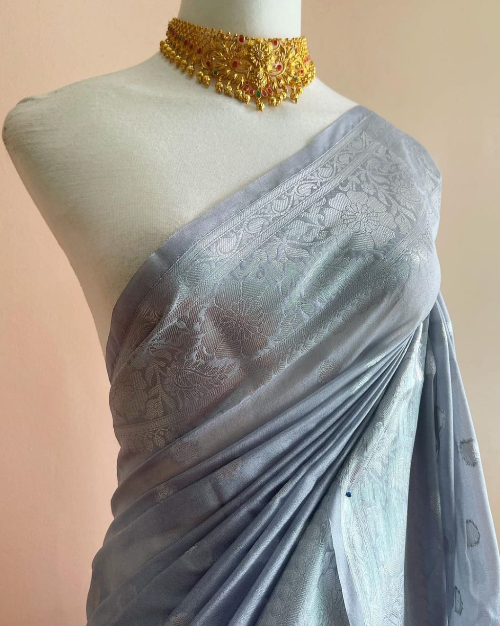 This Premium semi chiffon silk saree with silver zari saree is coming all the way from Varanasi