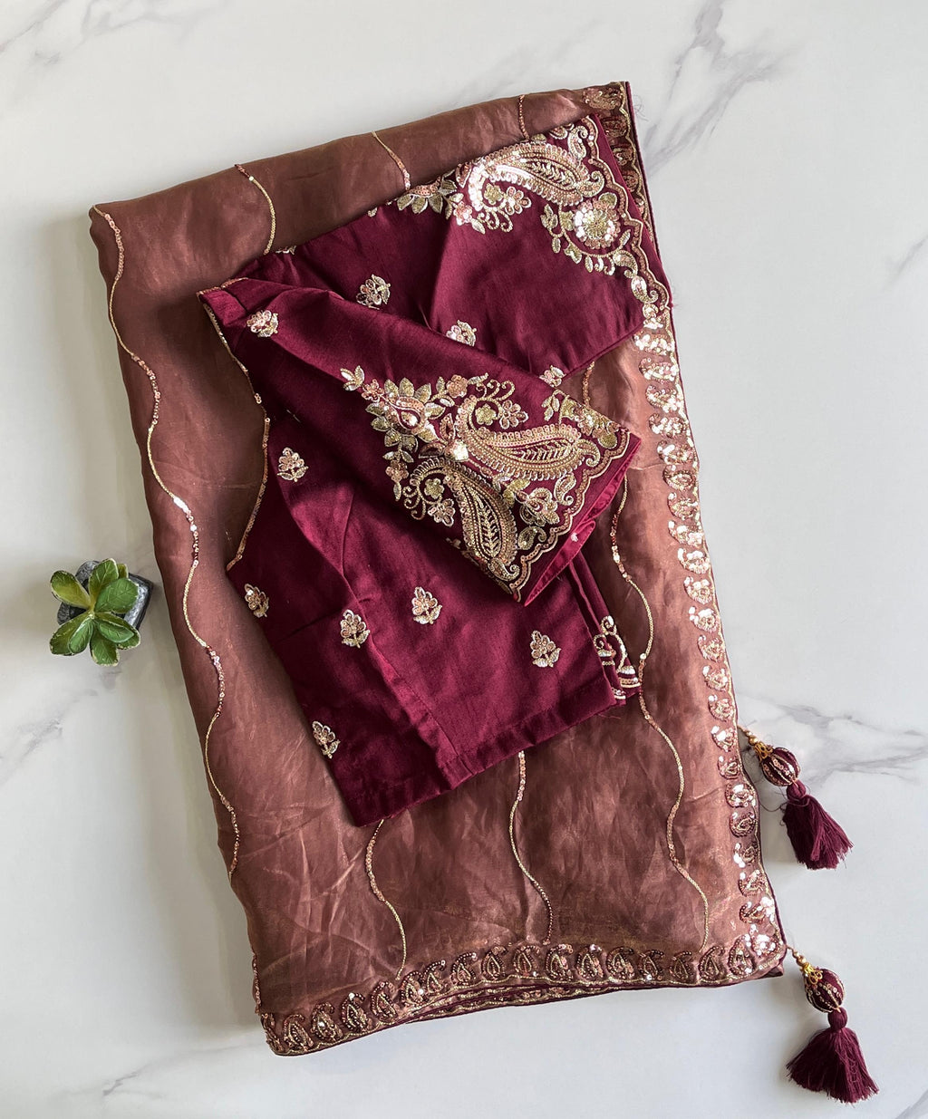 - Designer tassels on the pallu for a luxe finish