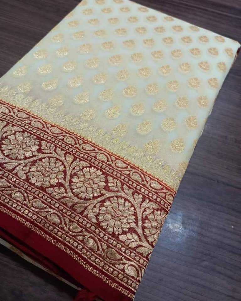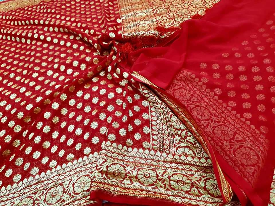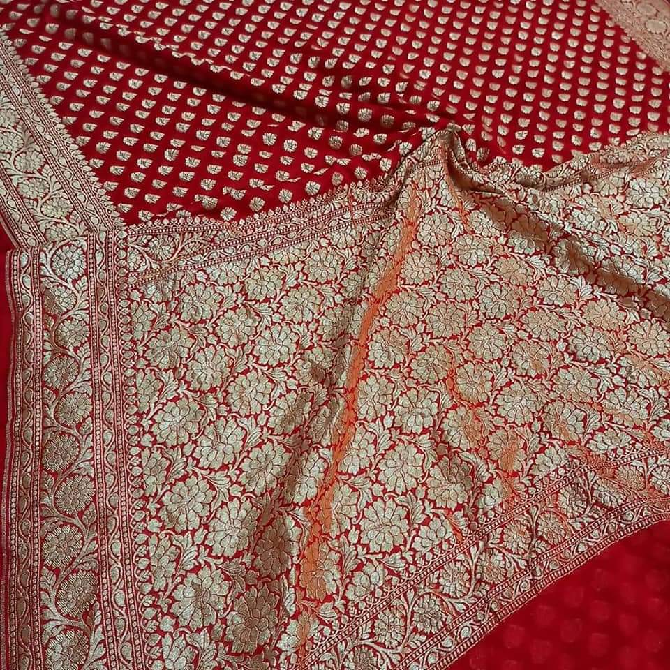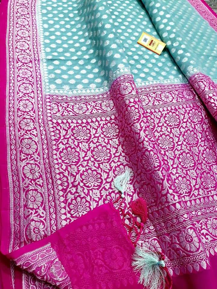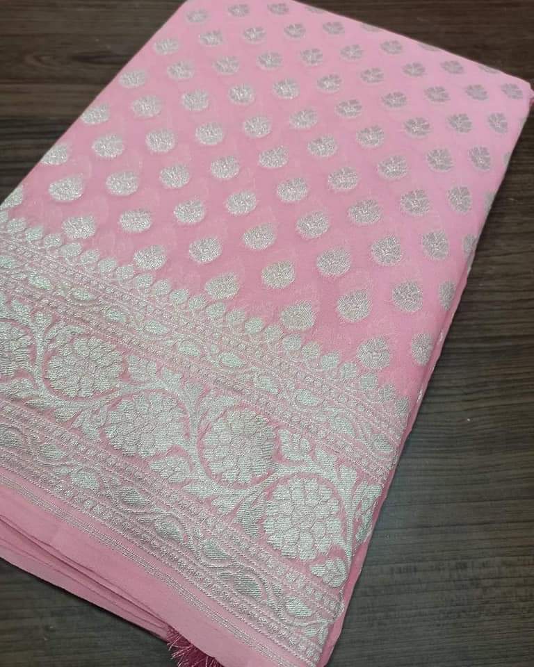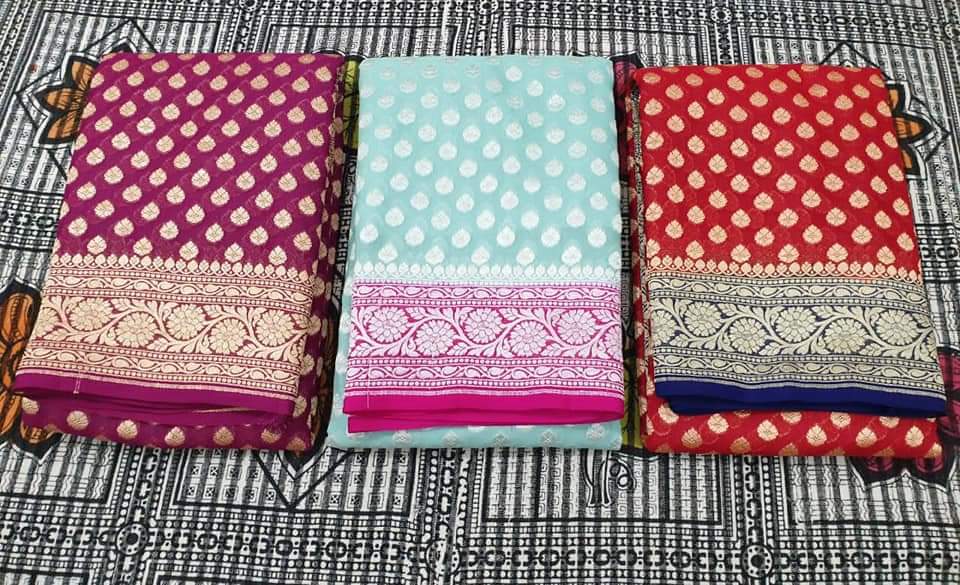 - Banarasi 100 % Pure khaddi Georette chiffon With beautiful Banarasi booty design with beautiful Colours available