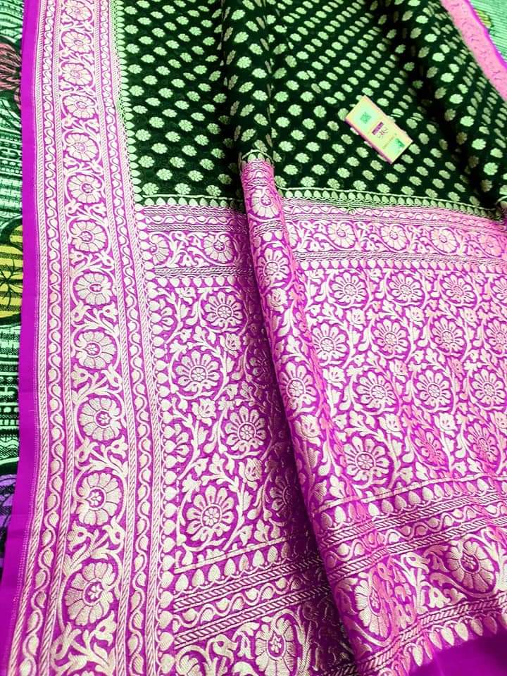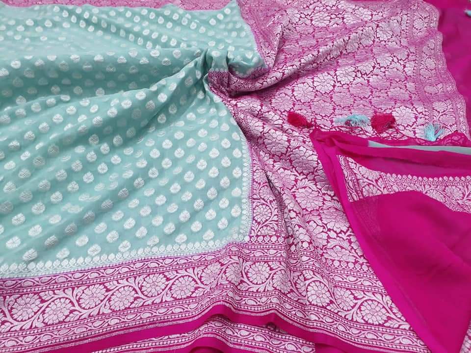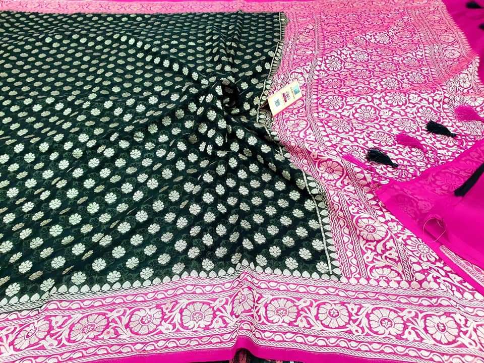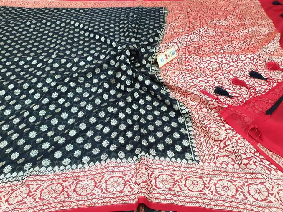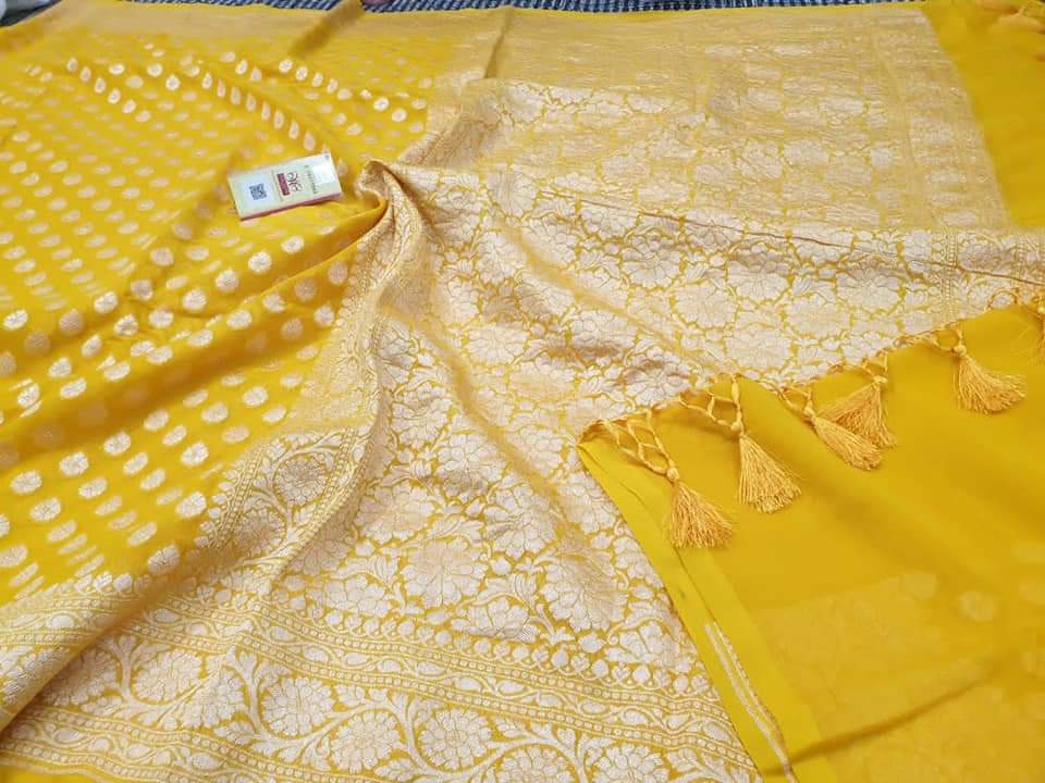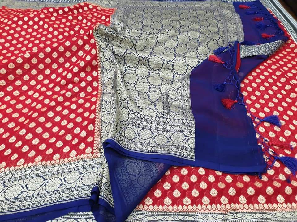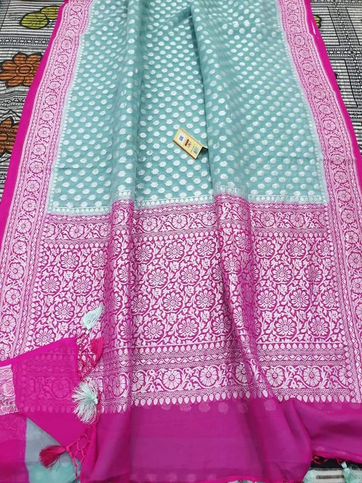 - Banarasi 100 % Pure khaddi Georette chiffon With beautiful Banarasi booty design with beautiful Colours available