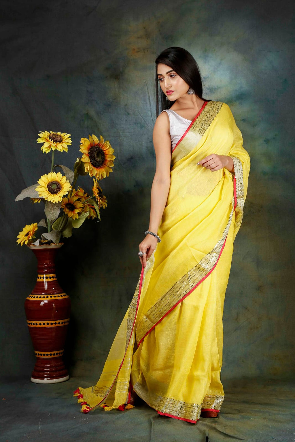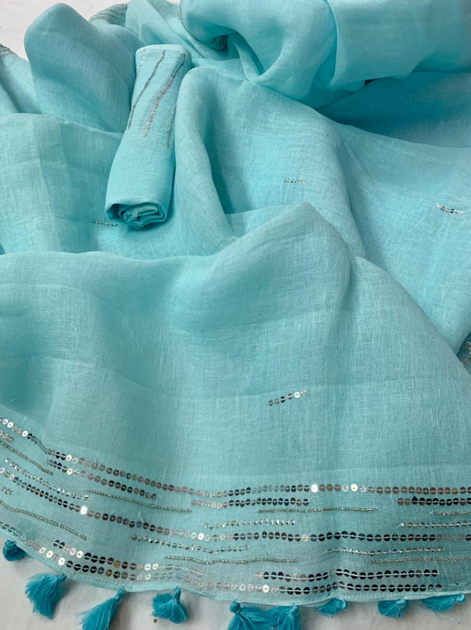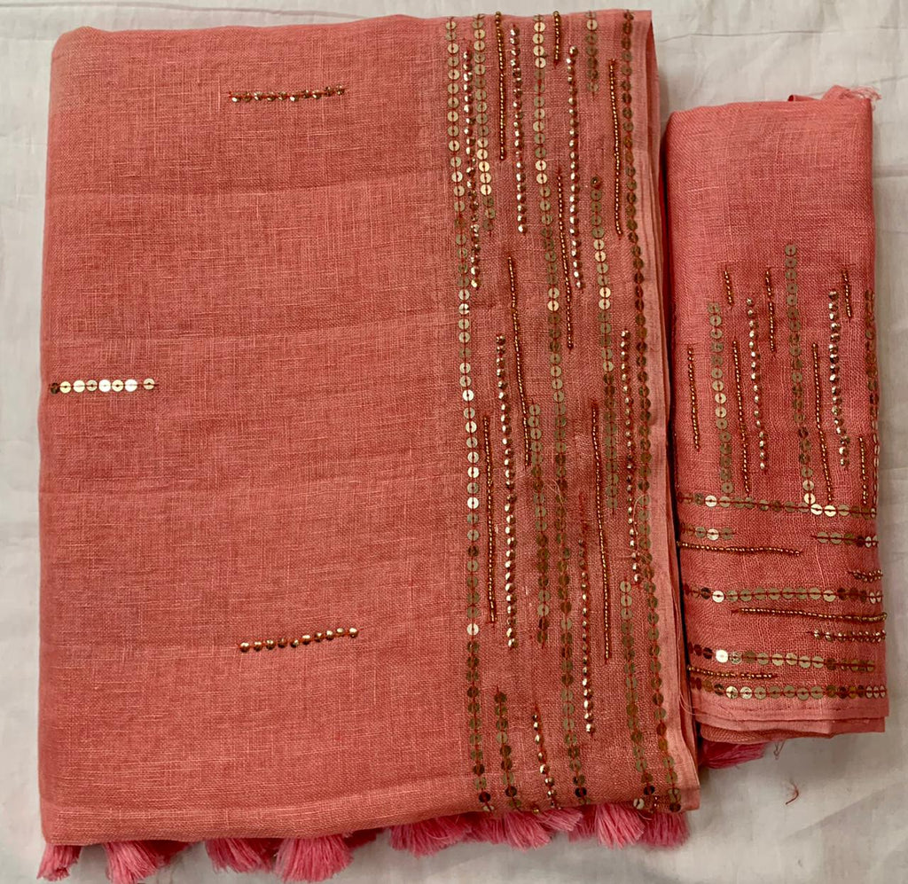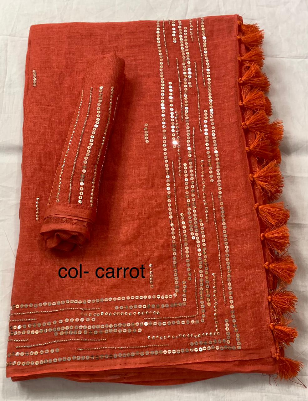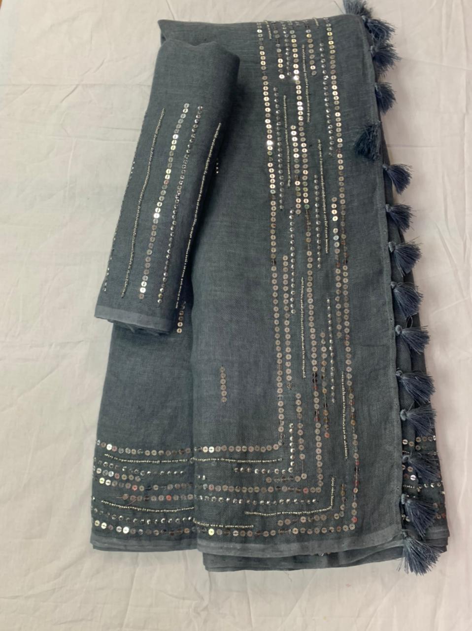• This saree has a soft finished linen fabric, comfortable and easy to wear.
