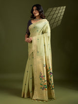 • Zari-woven muniya border symbolizing classic Paithani artistry