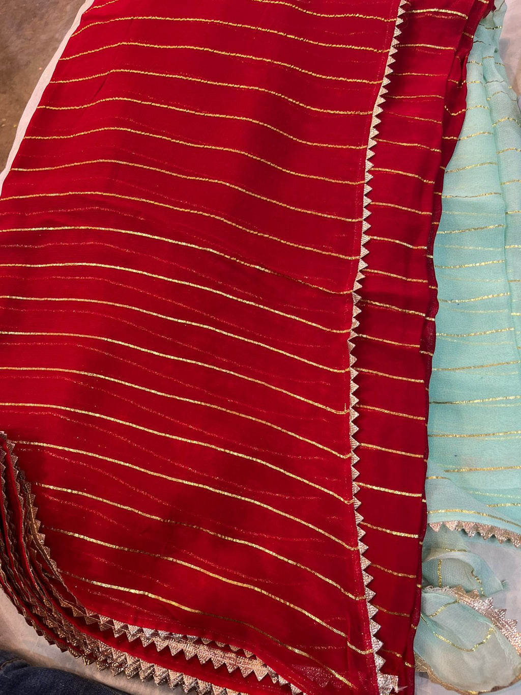Dual shade georgette saree with lurex thread with gota lace border 5.5m Blouse piece extra ₹100
