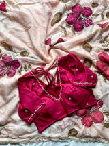 - Blouse: Banglori silk stitched blouse, fully handworked