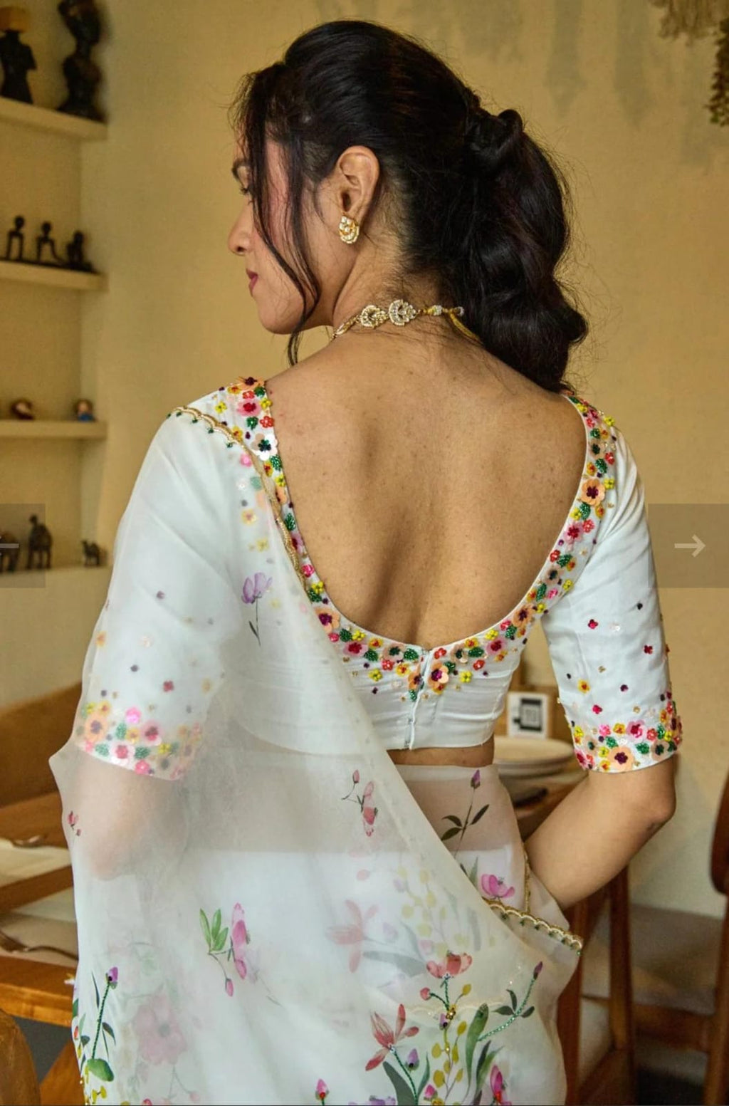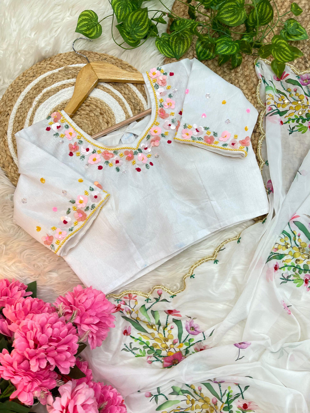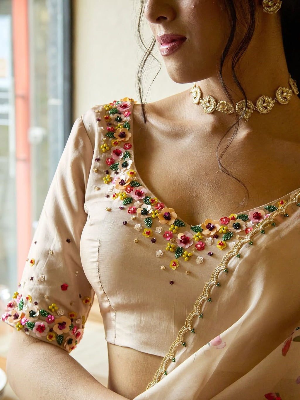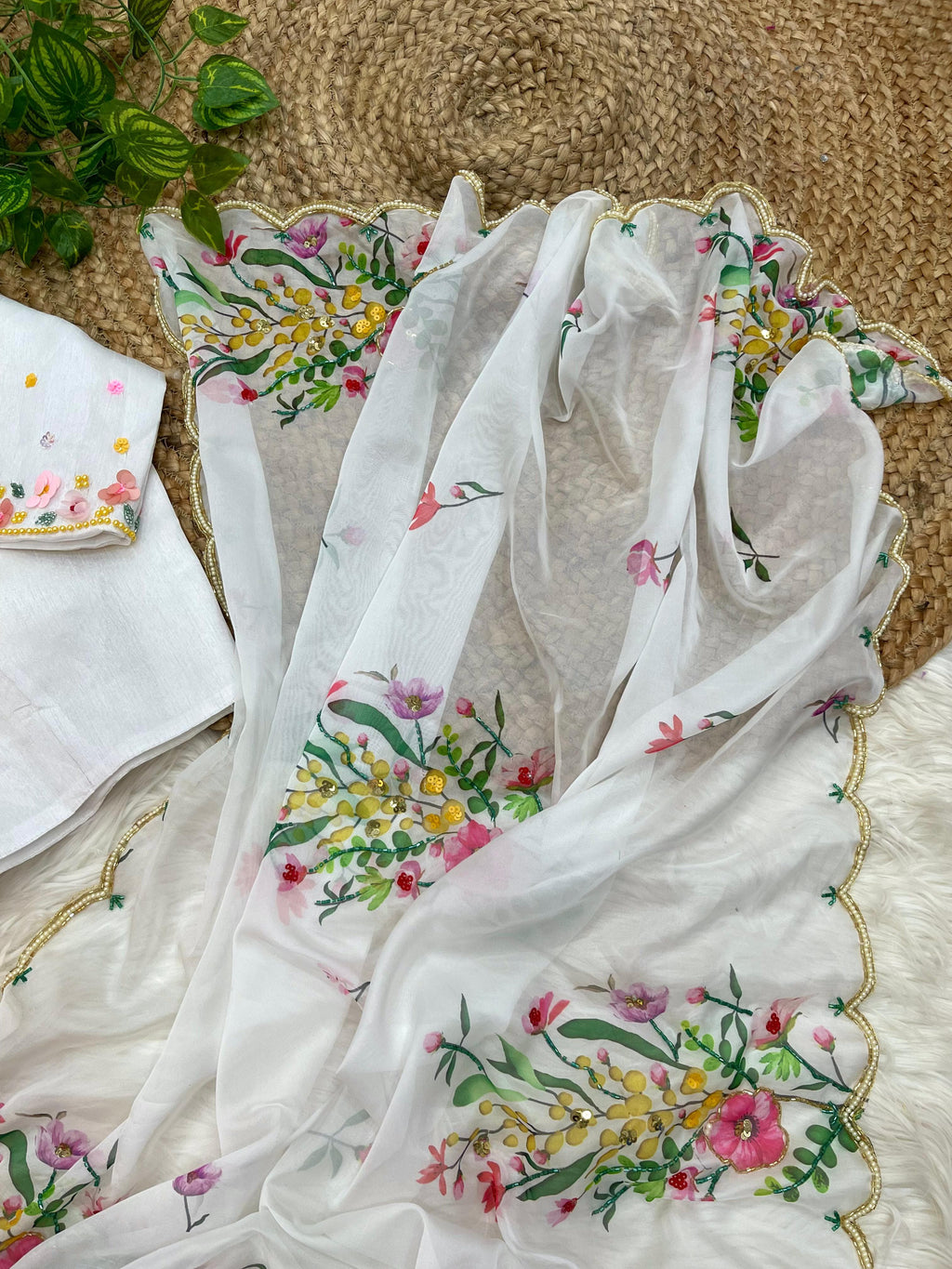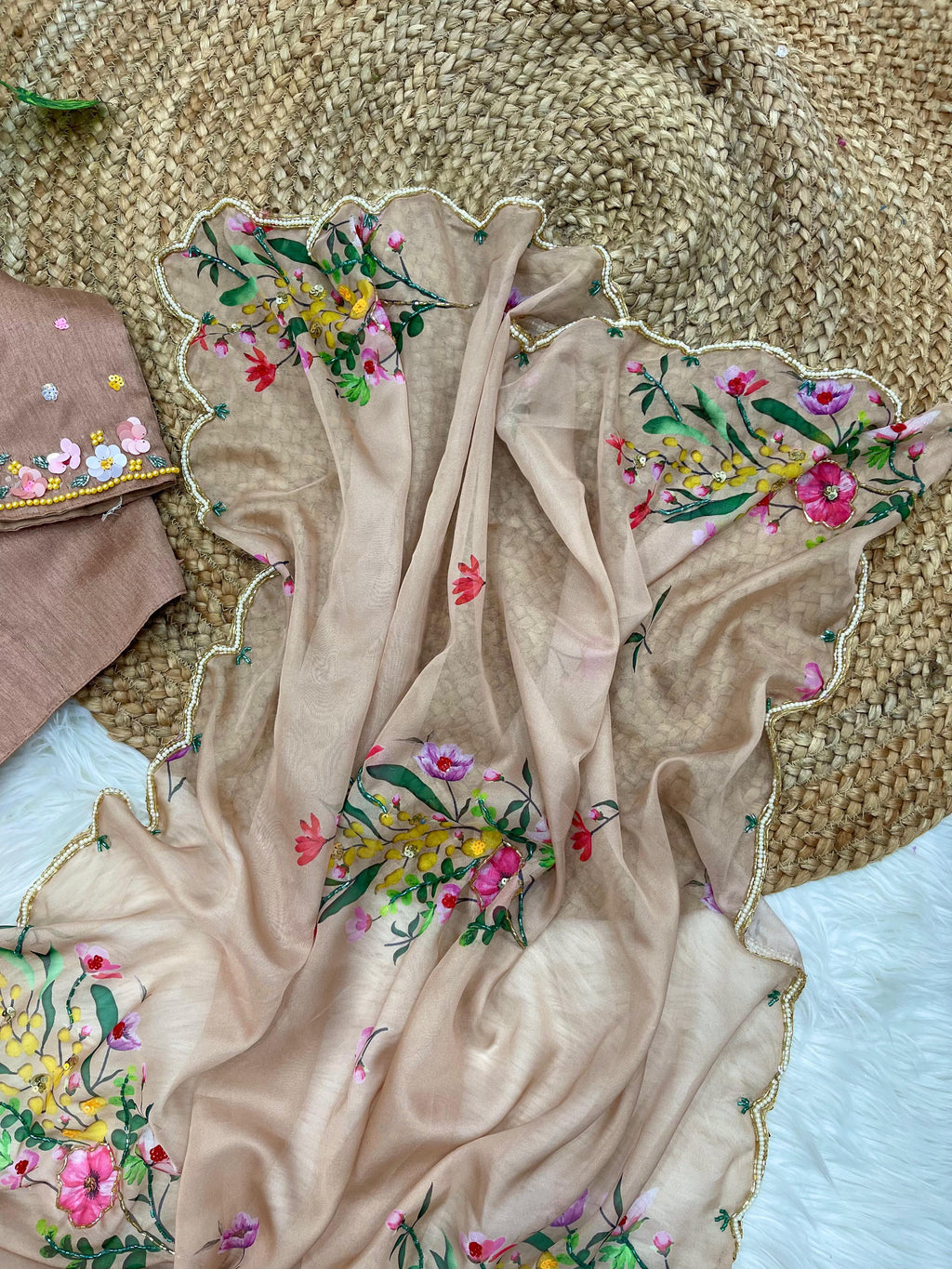 Handcrafted khatli and cutdana work with moti border