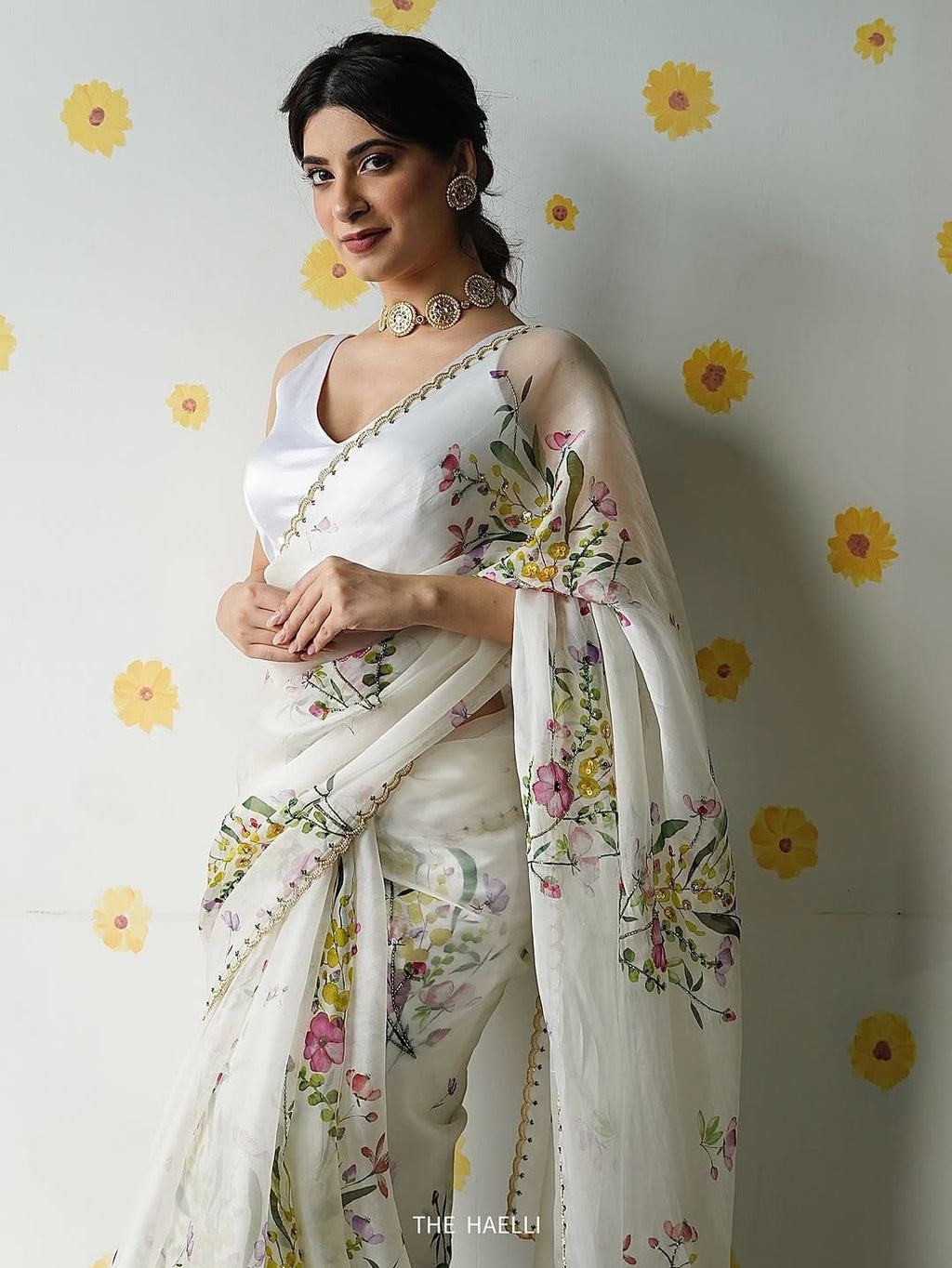 The highlight of this designer drape lies in its handcrafted detailing—delicate khatli embroidery, sparkling cutdana embellishments, and elegant moti outlining on the border, making it an ideal choice for weddings, festive celebrations, and special occasions.