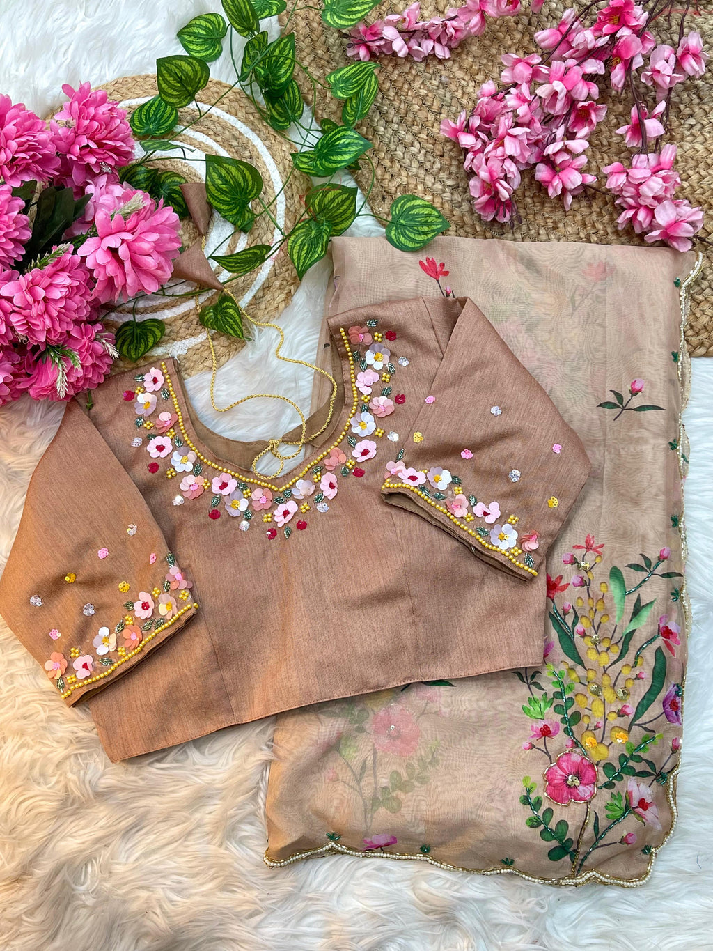 Step into timeless elegance with this floral printed Tebby silk saree, a perfect blend of tradition and modern charm. Crafted in premium Tebby silk, the saree features graceful floral motifs that exude sophistication and elevate your ethnic wardrobe.
