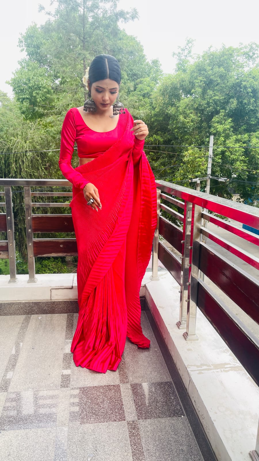 • Exclusive Launch of pure soft light weighted silk saree with heavy crush. Heavy softy silk ombre shade with complete crush and elegant pattern just with us and shiny crush pleats all over saree.