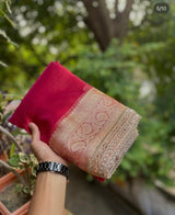 Step into elegance with Rivya, a Banarasi Semi Tissue Silk Saree that blends traditional craftsmanship with a soft, graceful drape. The saree features a subtle sheen and intricate traditional weave, making it a perfect choice for festive occasions, weddings, and elegant celebrations.