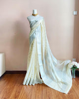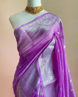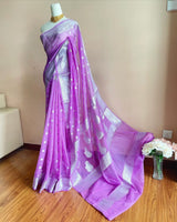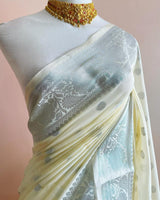 This Premium semi chiffon silk saree with silver zari saree is coming all the way from Varanasi