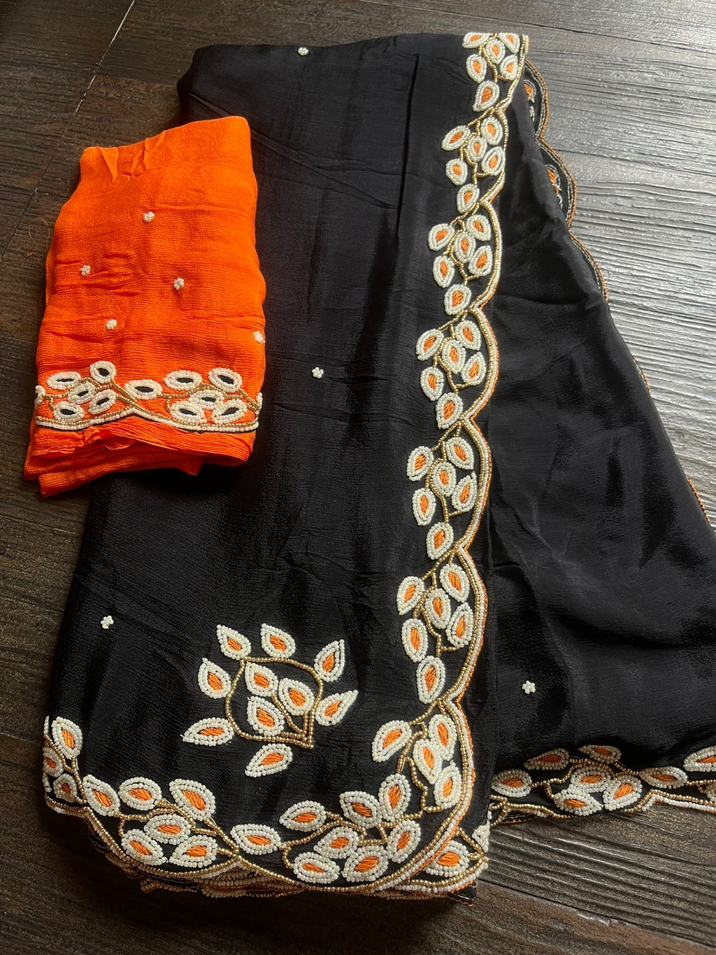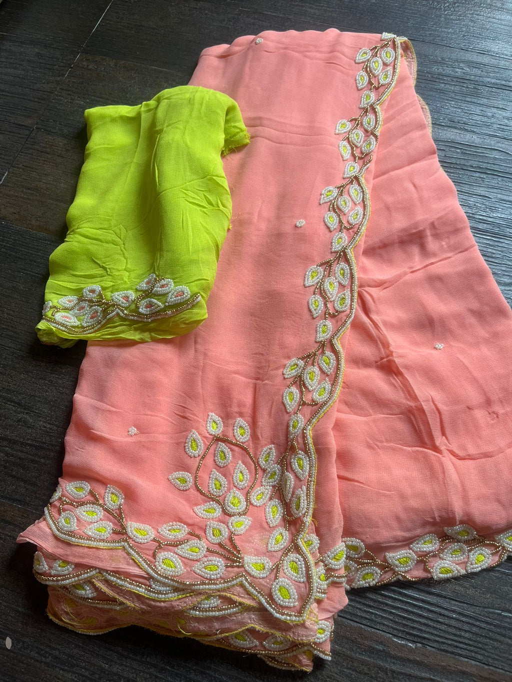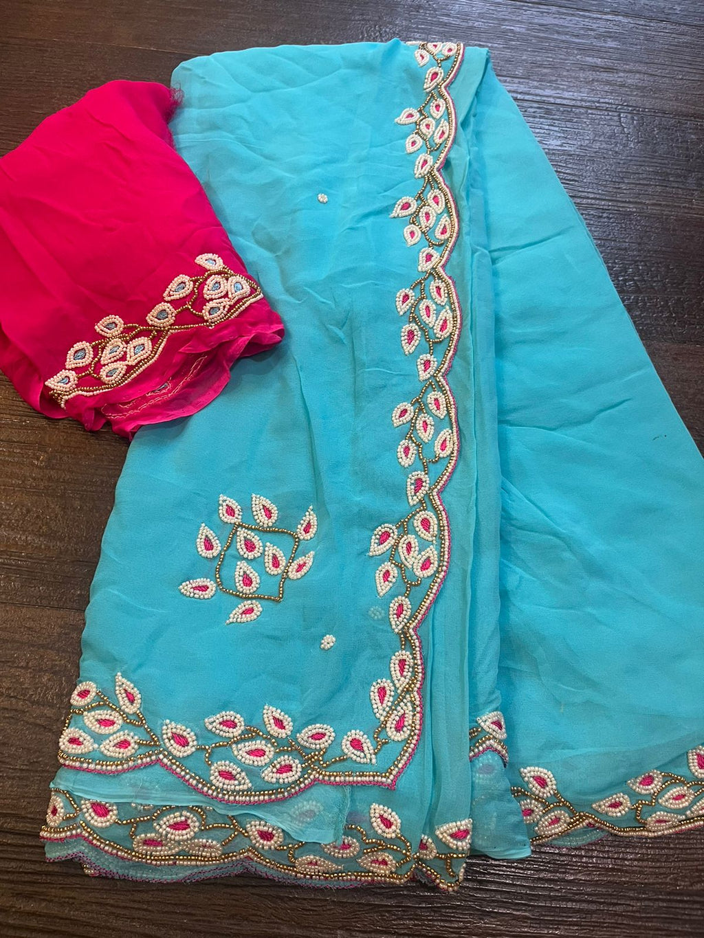This pure georgette saree with beautiful pearl work saree is coming all the way from Kolkata, WB