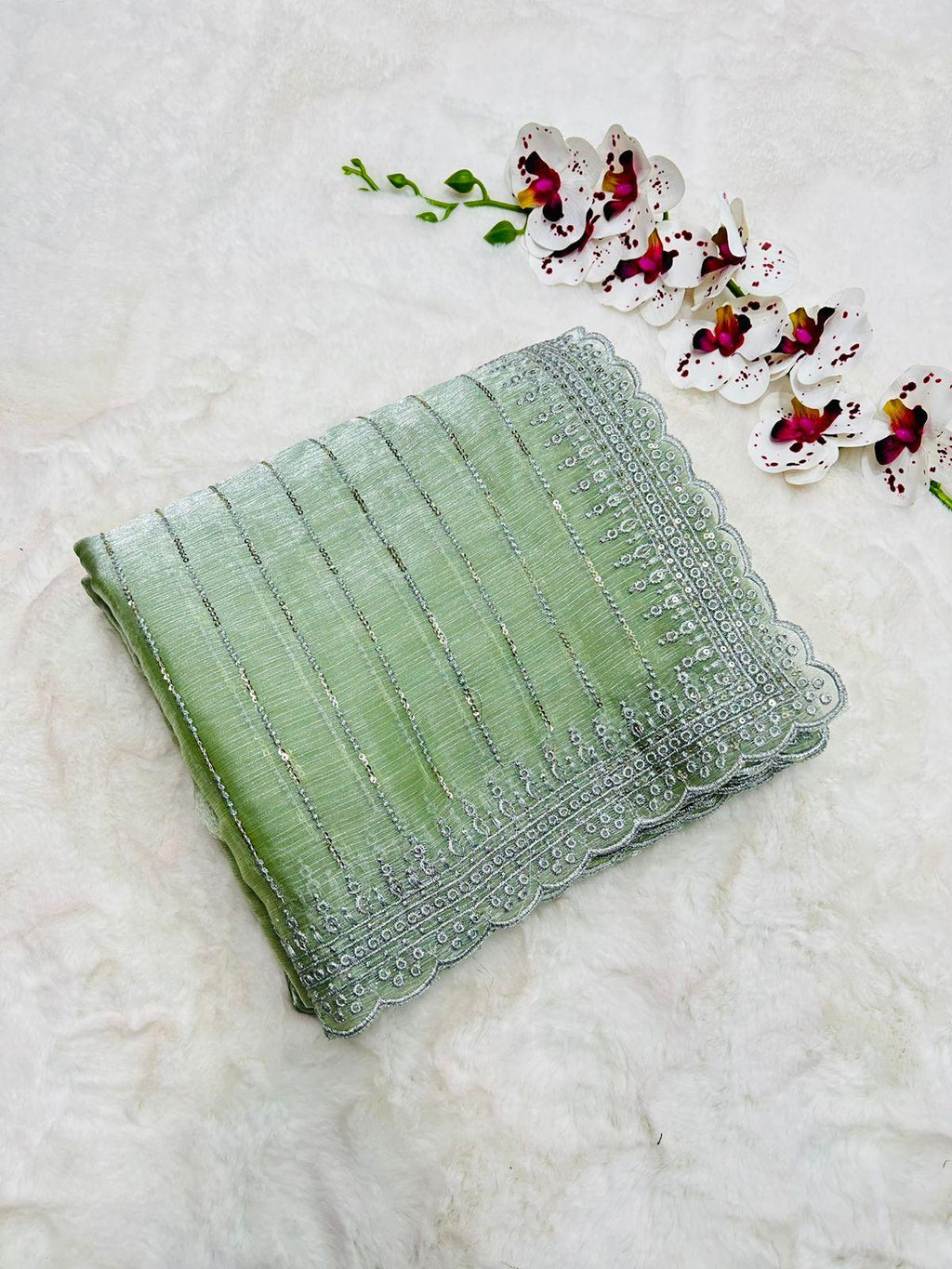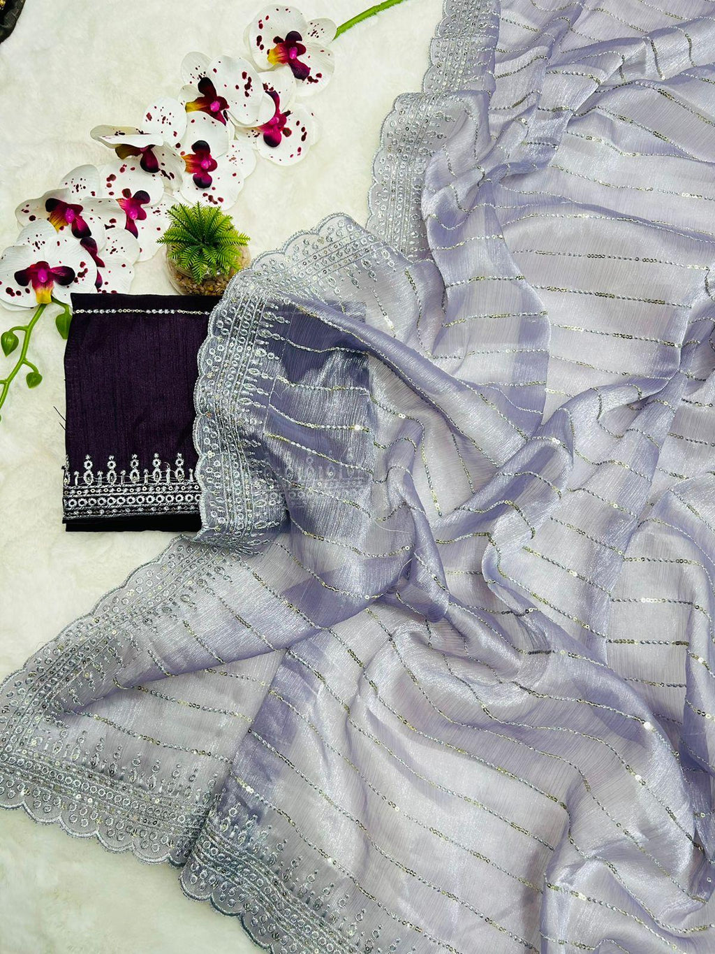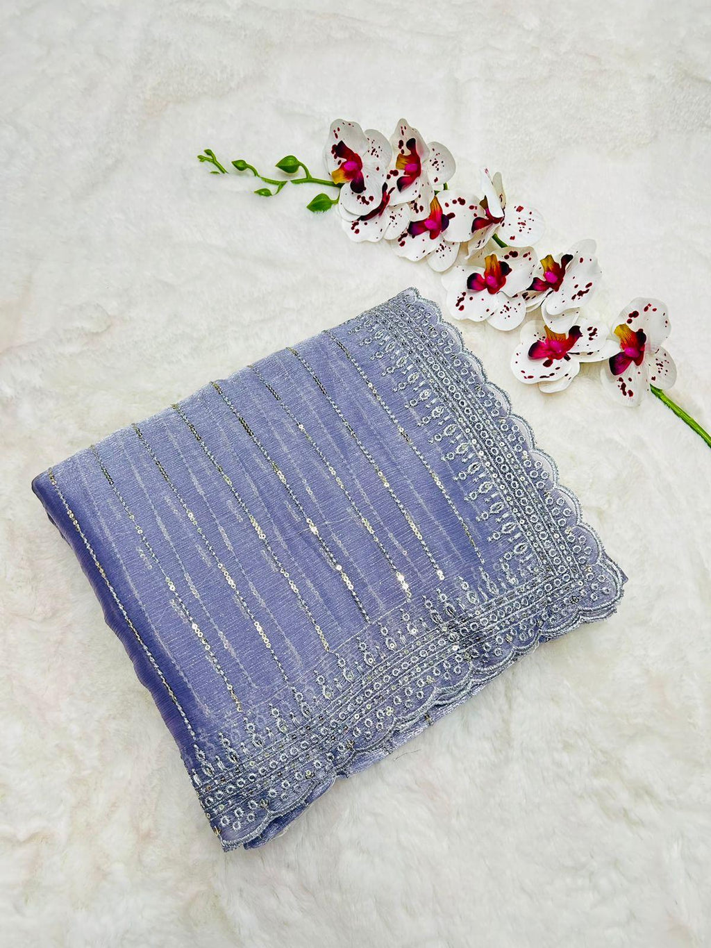 Premium Barbari Jimmy Choo Silk with elegant sequin & thread work, finished with silver zari detailing.