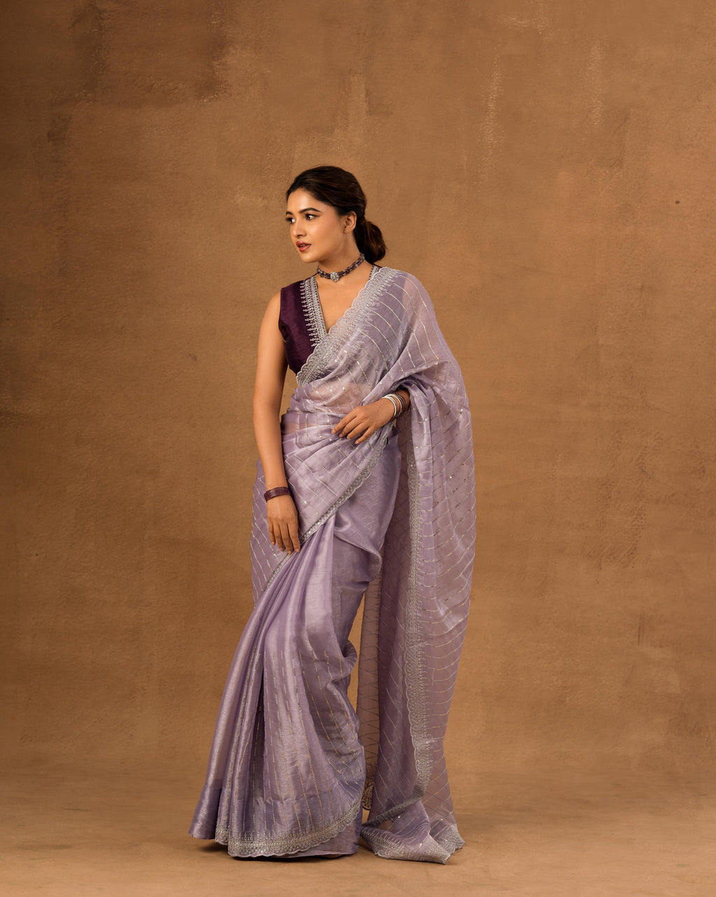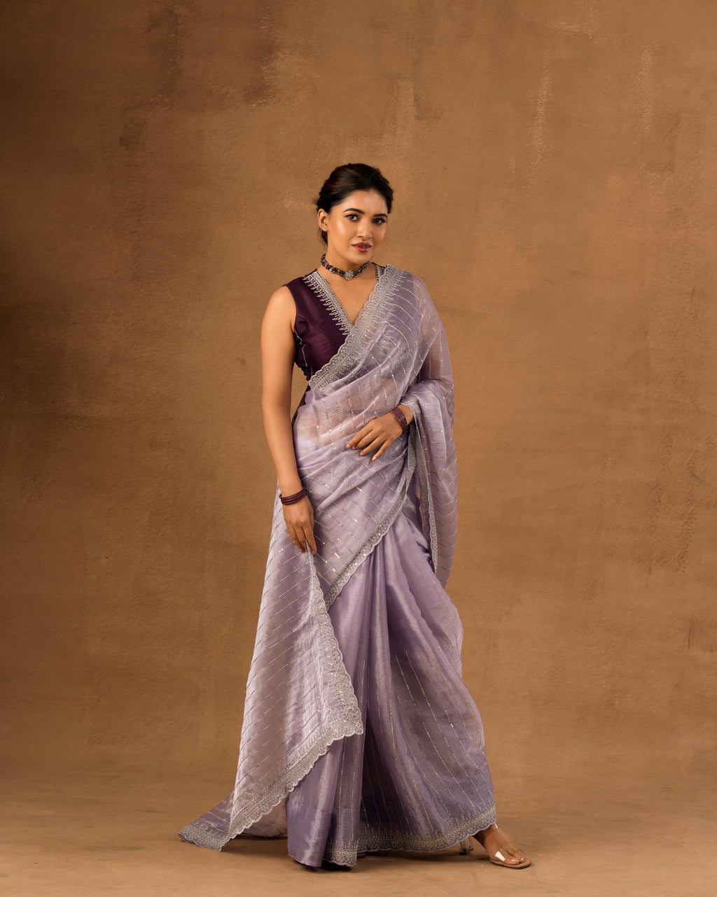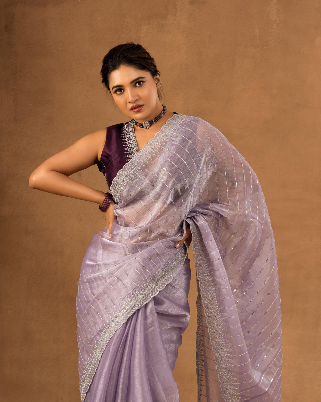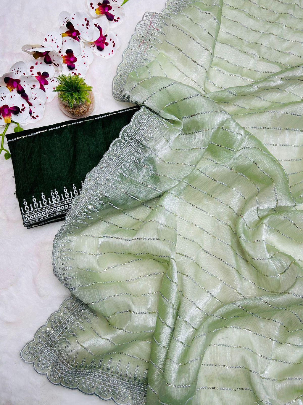 Premium Barbari Jimmy Choo Silk with elegant sequin & thread work, finished with silver zari detailing.