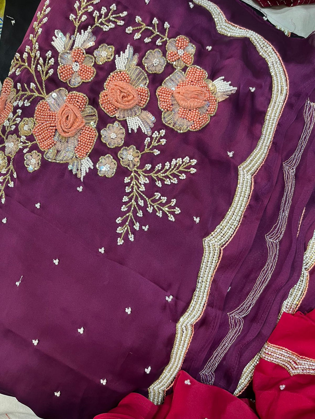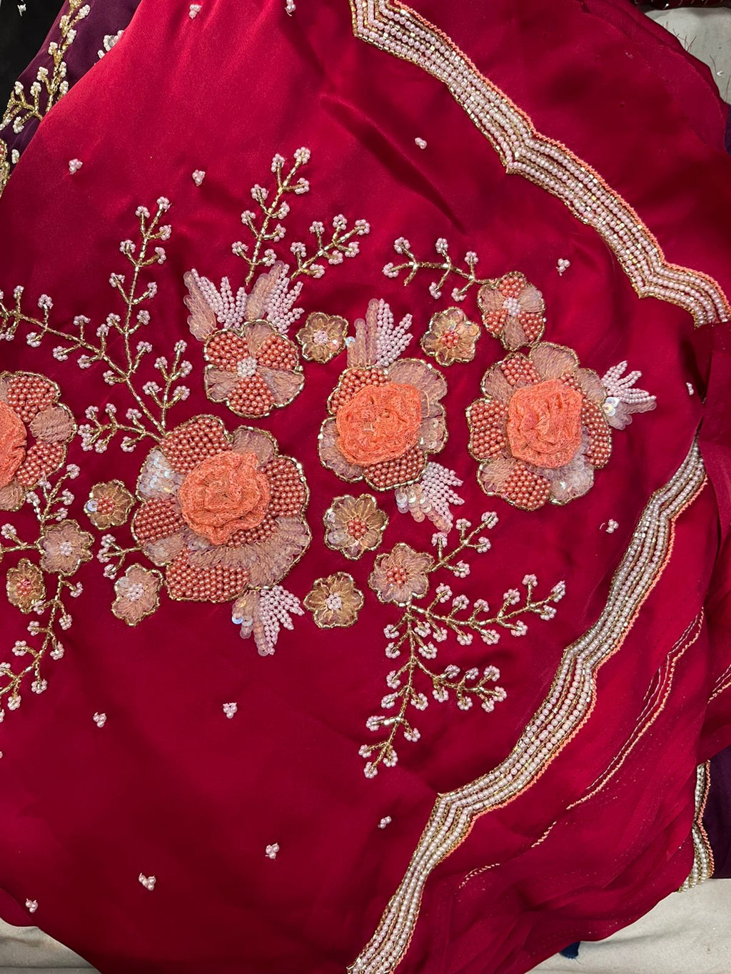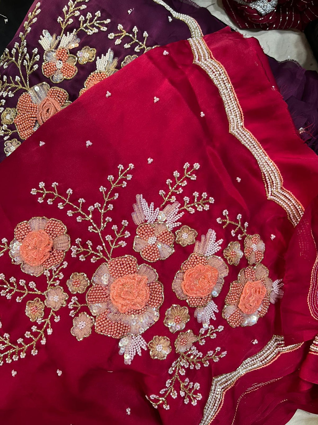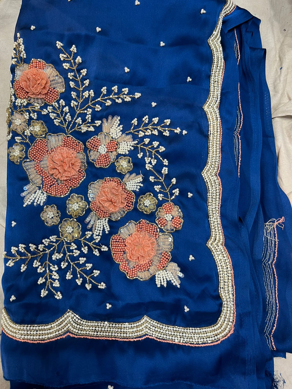 - Premium Crape saree with pure Handwork and cut work all over saree with blouse.
