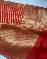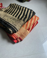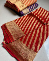 Elevate your ethnic wardrobe with this dyable Banarasi semi-georgette saree, crafted for elegance and versatility. The saree features a classic striped pattern that flows gracefully, creating a refined and timeless look.